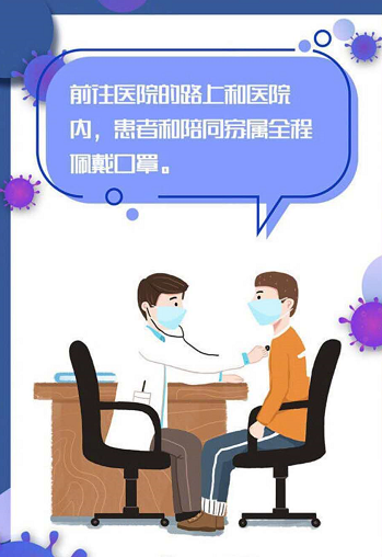 3、就诊、检查或缴费时,与他人要保持一米以上间距并按先后顺序进行。期间,不要随意走动和在与本次就诊无关的科室区域逗留,做到诊室、检查室、**室等定点、定位明确,就诊完毕即刻离院,以免因就诊时间过长,增加与他人聚集机会,**相互交叉感染的风险。